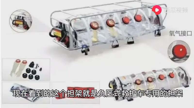 在車輛行駛狀態下通過空氣的自由流動,只能把車外的氣流流向車內,而且車內的氣體通過無毒化處理后排出車外。像這種屬于人傳人的傳染病可以避免更多的人被傳染。在運轉病人的時候也可以最大限度的隔離病人和醫護人員。同時可以使醫患互相感染?,F在看到這個擔架就是負壓救護車的專用擔架。