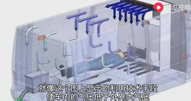 這2個月以來,新冠狀病毒在肆虐,在全國范圍內確診人數持續增高。這個主要是通過飛沫傳染,因此轉運病人的救護車需要具備良好的隔離性通風性和無菌性。為了避免外界環境污染轉運感染病患者就需要使用負壓救護車。那么負壓救護車有哪些特點呢?與我們平時常見的普通救護車有哪些區別不同點呢?顯浩體檢車廠家跟大家分享一下。最大的不同點就是普通救護車醫護人員和患者在同一空間。沒有隔離與救護車負壓凈化器。而負壓救護車通過重新設計的擔架。實現患者從家中就處于無菌的狀態。通過車載負壓凈化裝置向隔離艙輸送新鮮空氣。隔離倉的低氣壓氣體無毒化處理。既能保證完全隔離醫患雙方。又能保證外界的空氣不被污染。這是普通救護車達不到的。那么負壓救護車還有哪些特點呢?就像這個圖上顯示的利用技術手段使車內氣壓低于外界氣壓。