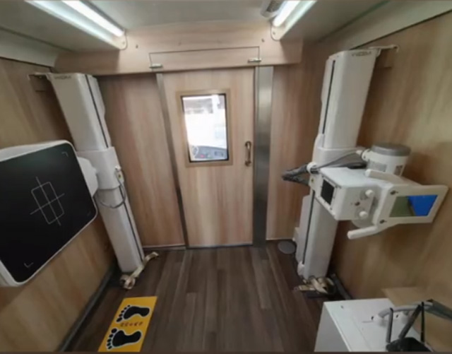 有時候胸口不舒服,腰不好怎么辦呢?車載DR可以實現就地檢查,不需要到醫(yī)院拍胸片進行DR超聲檢查。大家能在醫(yī)院完成的體檢項目,都可以實現。醫(yī)生通過外面的電腦,打開和控制設備。DR會根據檢查者的身高體型,自動判斷位置移動到檢查的區(qū)域。自動成像,并且在服務器里面記錄相應的數據。效率也非常高,當天檢查就能當天出結果。可以滿足突發(fā)事件中傷病員的頸椎、胸椎、腰椎、四肢骨骼、胸部、骨盆、各個關節(jié)全身的數字化DR檢查需求。