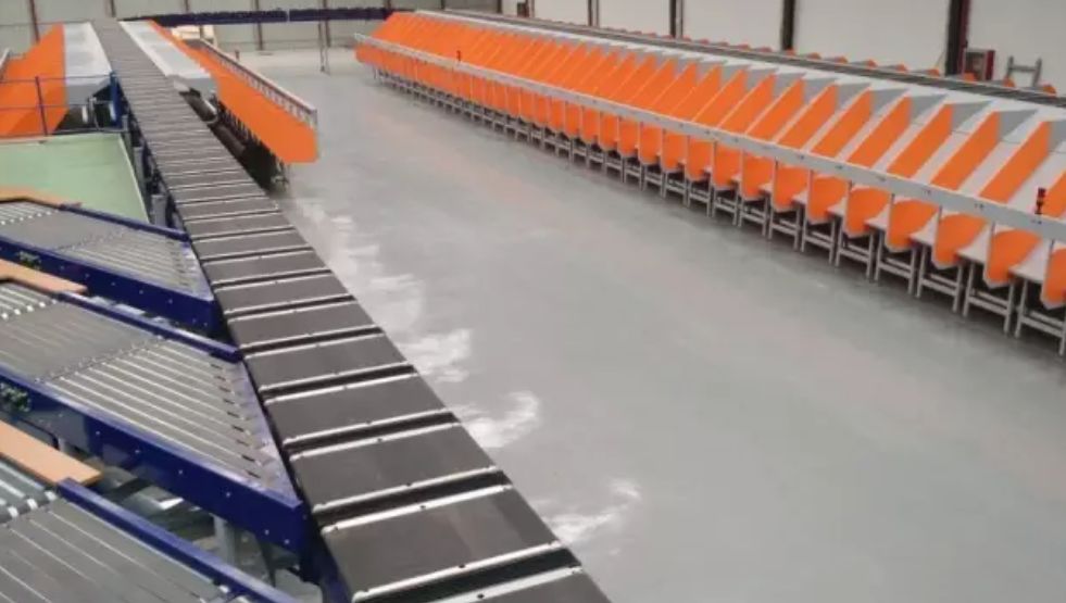 交叉帶分揀機,交叉帶分揀機有很多種型式,比較普遍的為一車雙帶式,即一個小車上面有兩段垂直的皮帶,既可以每段皮帶上搬送一個包裹也可以兩段皮帶合起來搬送一個包裹。在兩段皮帶合起來搬送一個包裹的情況下,可以通過在分揀機兩段皮帶方向的預(yù)動作,使包裹的方向與分揀方向相一直以減少格口的間距要求。優(yōu)點:噪音低、可分揀貨物的范圍廣,通過雙邊供包及格口優(yōu)化可以實現(xiàn)單臺最大能力約2萬件每小時。缺點:造價比較昂貴、維護費用高。