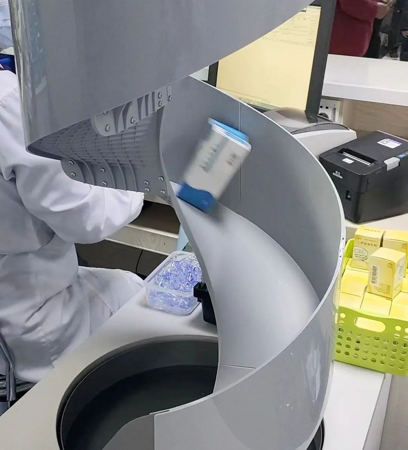 隨著人工智能的發(fā)展,以質(zhì)量為核心、以病人為中心”的服務(wù)理念。提高醫(yī)療服務(wù)質(zhì)量,改善群眾就醫(yī)體驗(yàn),醫(yī)院都紛紛上線智慧藥房。發(fā)藥機(jī)投入使用讓病患享受到更加便捷的藥學(xué)服務(wù)。發(fā)藥機(jī)從外形看,就像是大型自動(dòng)售貨機(jī),解決了人工發(fā)藥取藥調(diào)配差錯(cuò)率高、沒有過程記錄環(huán)節(jié)、患者等待時(shí)間長等缺點(diǎn),緩解了高峰期配藥壓力。發(fā)藥機(jī)系統(tǒng)還會自動(dòng)鎖定過期藥品功能強(qiáng)大,發(fā)藥機(jī)內(nèi)部溫度恒溫,有藥品缺藥的提示功能,系統(tǒng)就會按照處方的內(nèi)容自動(dòng)調(diào)配藥品,可以及時(shí)的補(bǔ)充藥品。實(shí)現(xiàn)實(shí)時(shí)監(jiān)控。這樣讓病患可以得到用藥需求。藥品充足就不會讓病人久等。最后把調(diào)配好的藥品通過傳輸帶輸送到發(fā)藥窗口。提高了效率將簡單繁重機(jī)械重復(fù)式的工作交給智能發(fā)藥機(jī)完成。配合具有108存儲位的智能調(diào)配機(jī)和78種藥品拆零的分包機(jī),系統(tǒng)全天能達(dá)到6000張?zhí)幏教幚砟芰Γ_實(shí)能緩解高峰期配藥壓力。真正實(shí)現(xiàn)了藥品調(diào)配的全流程智能化操作。為患者的用藥安全提供了有力的保障。