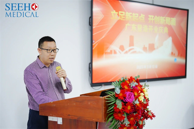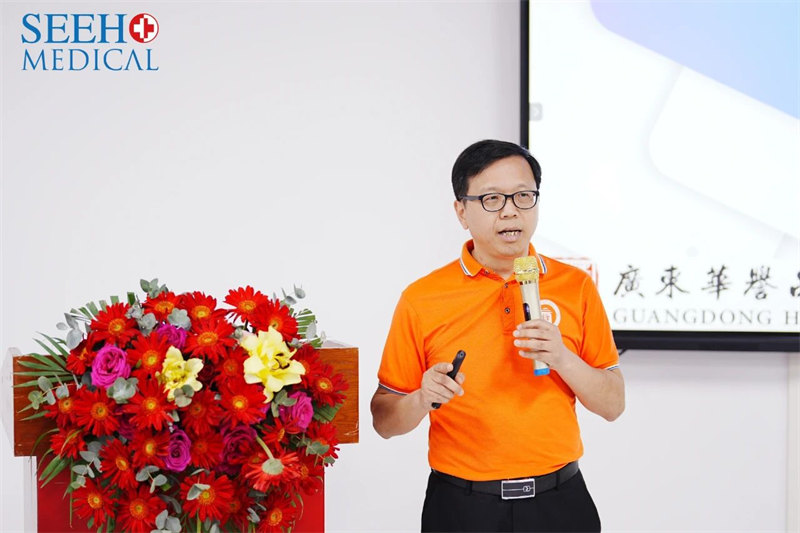 開業典禮當天,廣東顯浩裝備科技有限公司還安排了一場合作伙伴們期盼已久的新產品發布會,由產品經理許耀文做新產品介紹。
