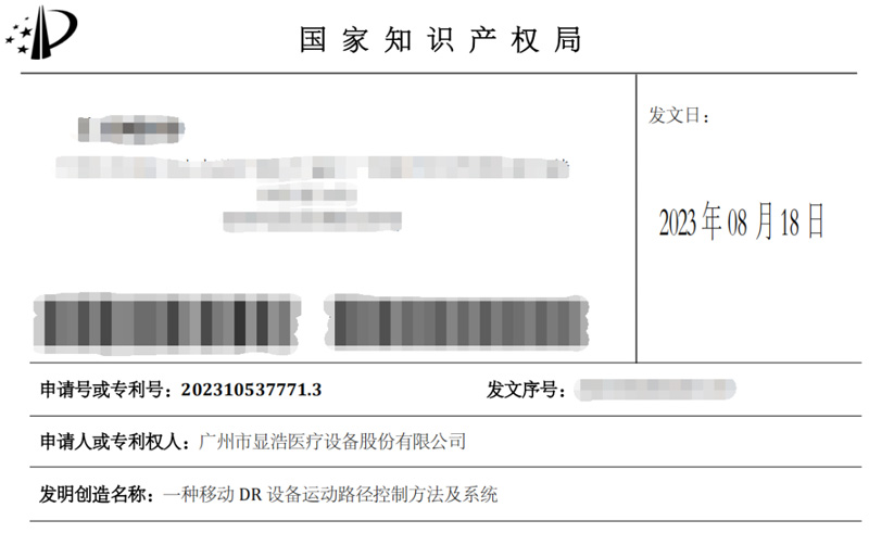 近日,由我司申請的發明專利“一種移動DR設備運動路徑控制方法及系統”正式獲得國家知識產權局授權通過!這是我司在醫療設備產品技術研發上又一次重要突破,也是我司全面創辦創新型企業的成果。