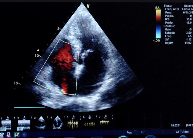 (三)檢測節(jié)段性室壁運動異常,研究冠心病患者左心室功能和分析局部室壁運動過程中。測量每一節(jié)段室壁的運動量,運動正常的節(jié)段彩帶色彩均勻?qū)哟喂庹_\動減弱的節(jié)段,厚度薄層次不全。心內(nèi)膜位移幅度和速度均減低。心內(nèi)膜位移幅度和速度甚低或難以測得。正常的多層彩帶消失,呈現(xiàn)紅色色帶,心內(nèi)膜位移呈負向,幅度和速度亦減低。急性心肌梗死的患者中可用于識別存活心肌抑或壞死心肌。多巴酚丁胺負荷試驗存活心肌的心內(nèi)膜位移幅度增高,停藥后即消失,而壞死心肌則無上述表現(xiàn)。實時檢查冠心病的節(jié)段性室壁運動異常,有時候通過發(fā)現(xiàn)局部心肌運動的時相異常,對于心臟傳導障礙的診斷也可能有幫助。