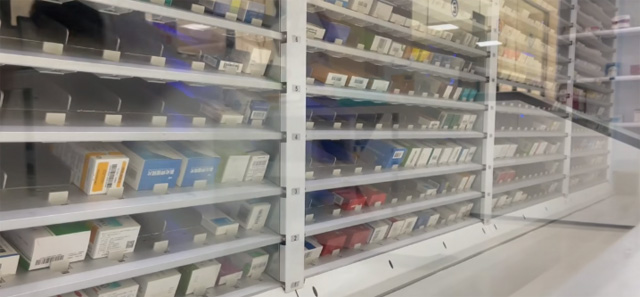 快速出藥系統(tǒng),智能存取系統(tǒng),混合智能配發(fā)系統(tǒng)。出藥系統(tǒng)負(fù)責(zé)盒裝藥品的發(fā)送,智能存取系統(tǒng)負(fù)責(zé)針劑量小的藥品的儲(chǔ)存和發(fā)放。智能配發(fā)系統(tǒng)負(fù)責(zé)為后臺(tái)藥師降配好的藥品藥框提供擺放位置的指示,為前臺(tái)藥師提供患者取藥時(shí)藥框位置的指示。針劑發(fā)藥機(jī)的發(fā)框設(shè)備接收到處方信息后,電腦打印出藥品的明細(xì)并且彈出藥框。藥品通過傳輸帶傳送,然后到達(dá)出藥口。針劑區(qū)對(duì)應(yīng)藥品的藥盒會(huì)亮燈提示藥劑師藥品的位置。點(diǎn)擊出藥確認(rèn)后會(huì)接收下一張?zhí)幏剿幤沸畔ⅰU{(diào)劑藥師核對(duì)無誤后將藥框放到軌道上面。藥框通過軌道傳送到對(duì)應(yīng)的發(fā)藥窗口。發(fā)藥藥師根據(jù)出發(fā)信息點(diǎn)擊發(fā)藥,對(duì)應(yīng)處方的藥框亮燈進(jìn)行提示。發(fā)藥藥師根據(jù)處方再次核對(duì)藥品無誤后,粘貼用藥標(biāo)簽,進(jìn)行用藥交代,結(jié)束發(fā)藥。